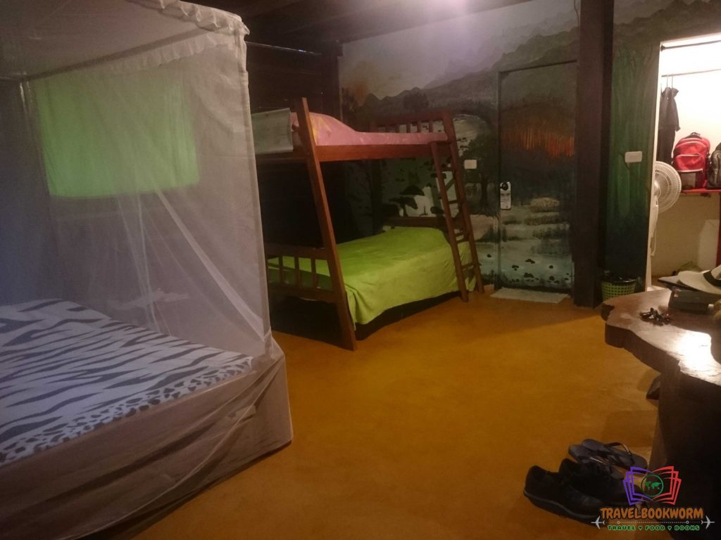 The new room that we had was a family room with a double bed and a bunk bed. And although the price for the room was double what we were paying on the first night, it was worth the penny. The room comes with a private toilet and a shower, and most importantly, we have two standing fans and of course, electricity.