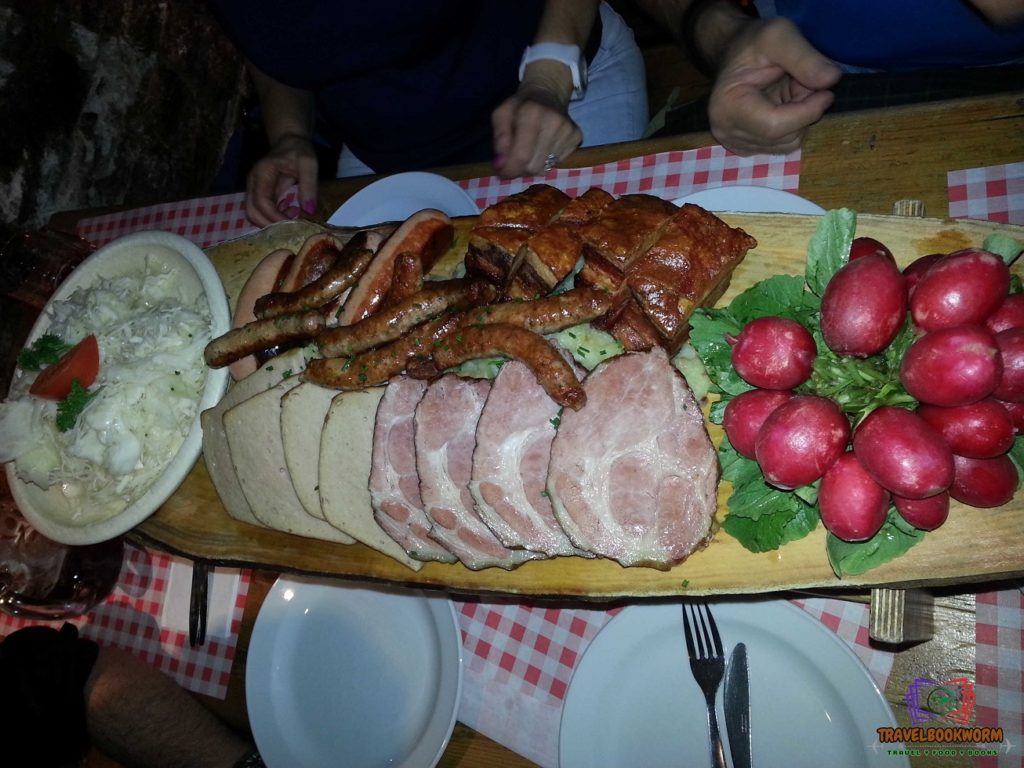 We sat on benches with long tables a couple of rows away from the copper mash tuns. We ordered a huge platter that came with various ham, sausages, pork, salad, coleslaw, and radishes. We also tried their brew, and each had a 1-litre glass, but of course, I wouldn’t be able to finish it, so I settled with the smaller one.
