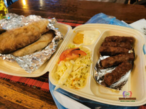 William Walker Street was lively, lined with drinking places, and Dio was pleasant, with ceiling fans. One and a half pints cost €4.50. They did not sell food, though, so we bought qebapa next door at Burger Time Grill House for €2.50 and ate it there.