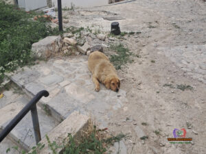 Although we almost cancelled the walk halfway through when we found a dog sleeping and blocking the top of the stairs. The dog looked quite old, and something was wrong with its eyes; it also had a yellow ear tag.