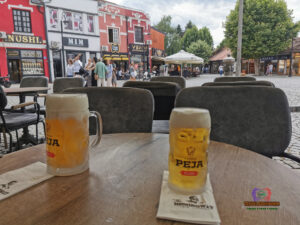 - The Hemingway Bar Lounge: This bar, located right in front of the water fountain, was very busy during our visit. As it was smack right in the centre, frequently visited by tourists, the price was noticeably higher compared to other places. Here, for two and a half pints costs €8. Still, it’s manageable, right?